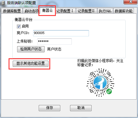 设置衡器云的商户号后点击“衡器云”设置页面→点击“显示其他功能设置”