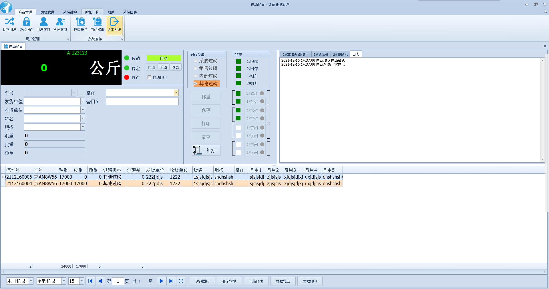 输入收货单位、发货单位、货名、规格等过磅信息,完成后点击提交