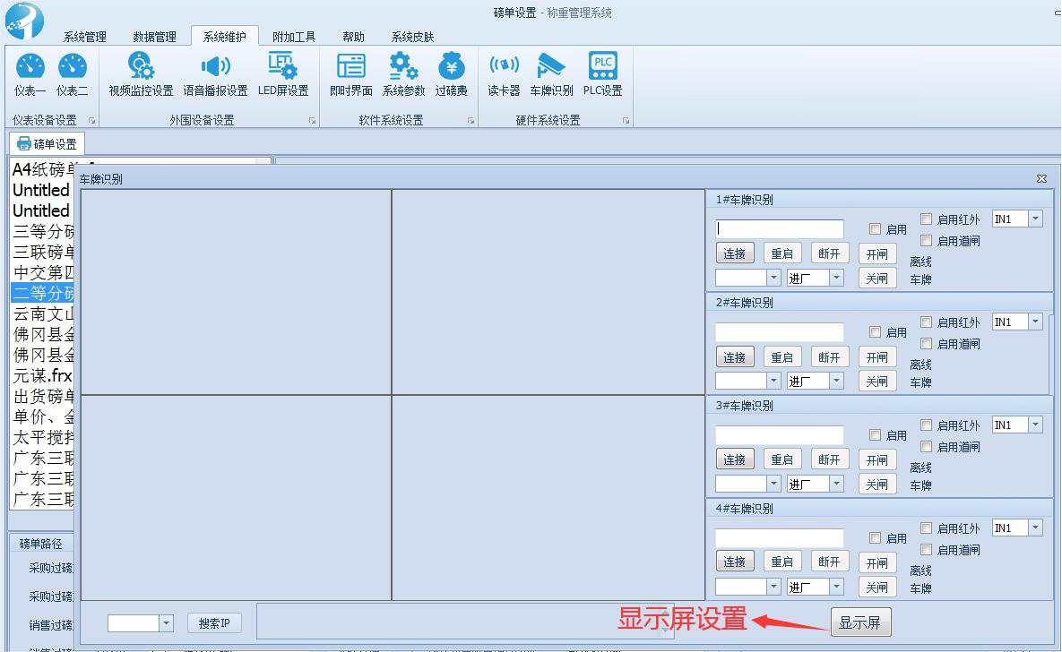 3,登录我们的称重管理系统,进入系统维护,打开车牌识别设置;